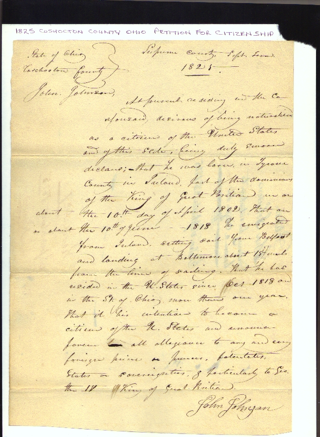 Scanned copies of the original Petition for Citizenship filed with the Supreme Court in 1825.
